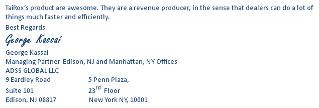 "TaiRox's products are awesome. They are a revenue producer, in the sense that dealers can do a lot of