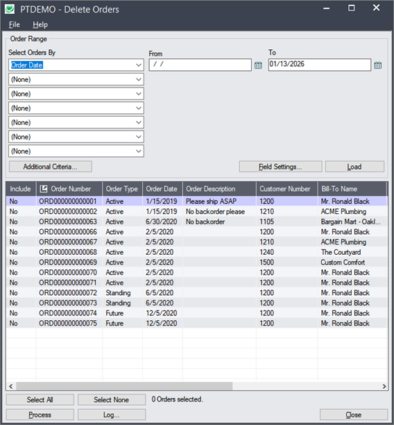 Delete Orders