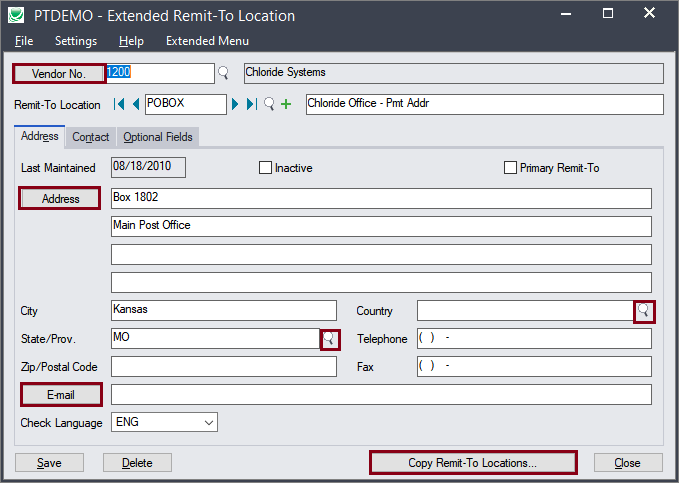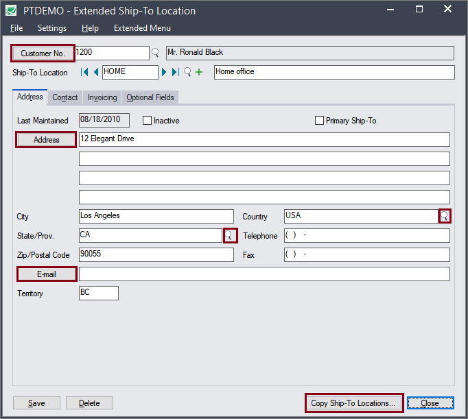which will optionally enforce Country, State and Province codes. Ship-To codes can be copied to multiple companies.