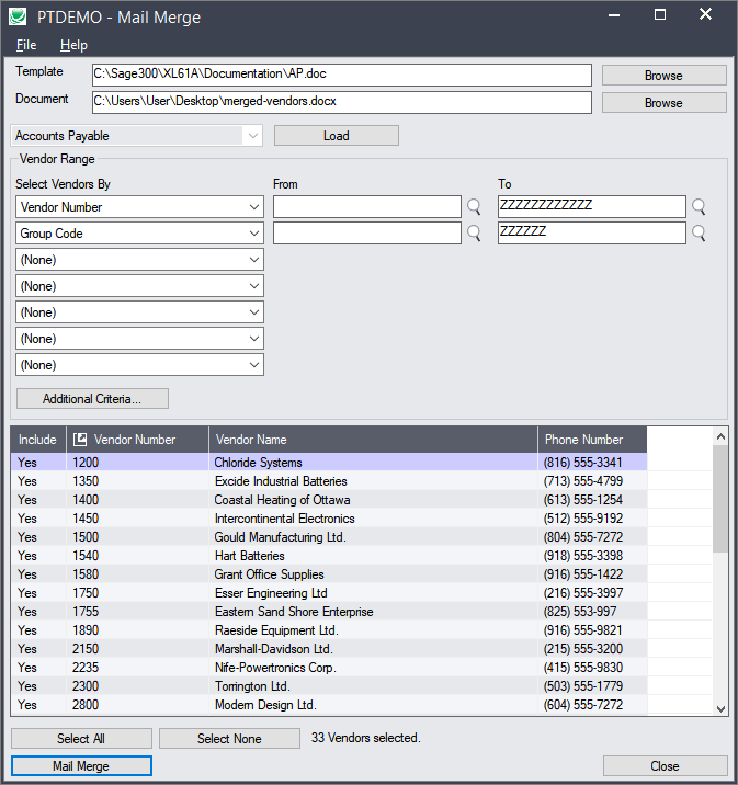 letting you select shipments using ranges of shipments, customers, and optional fields,