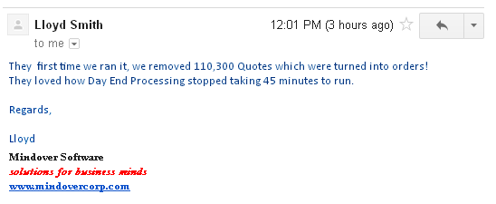 They loved how Day End Processing stopped taking 45 minutes to run." Lloyd Smith, Mindover Software. Show complete quote.